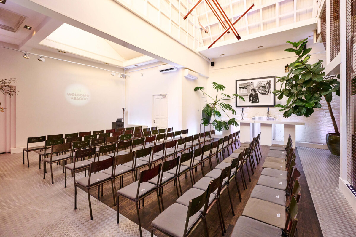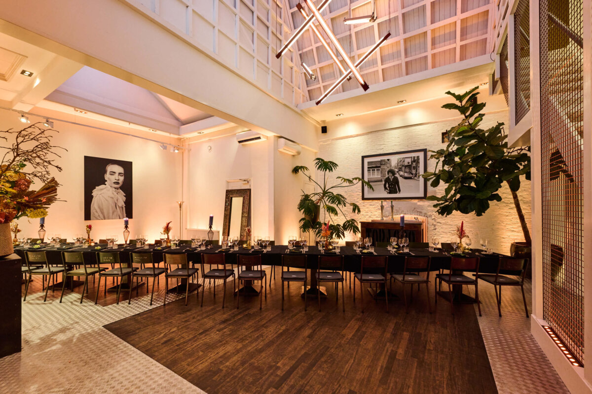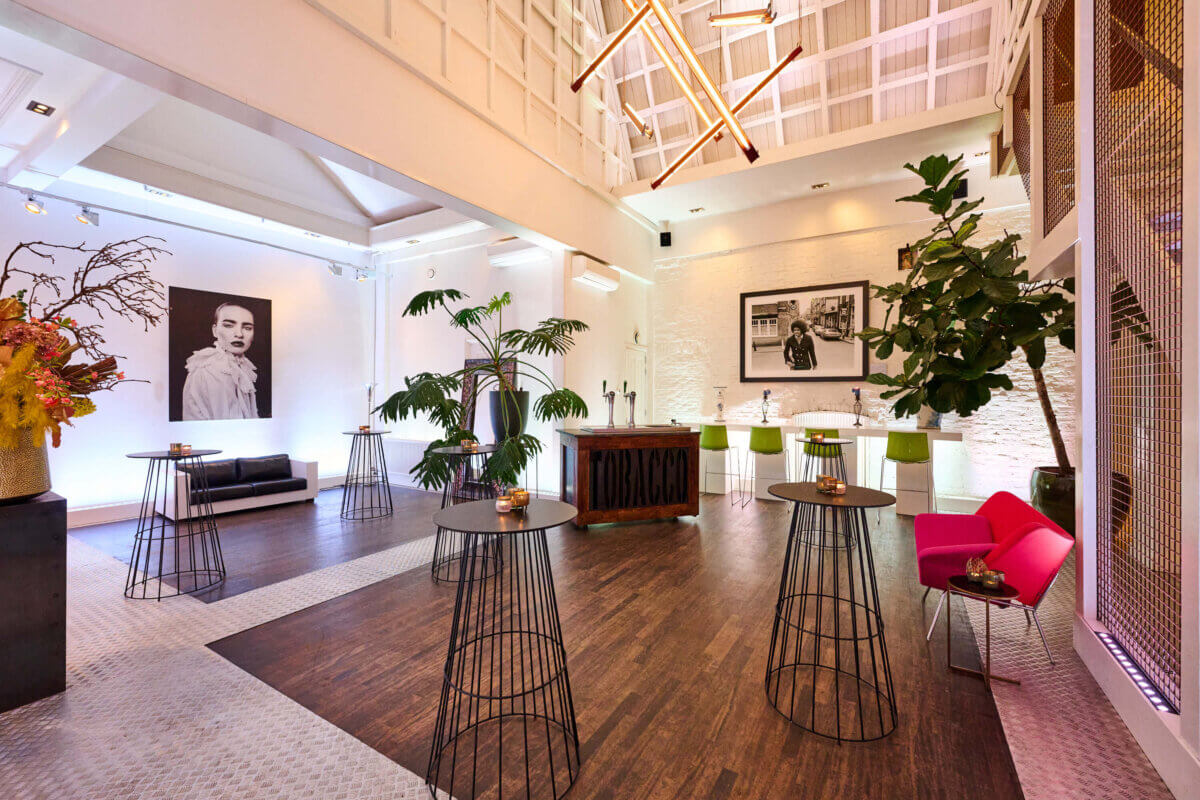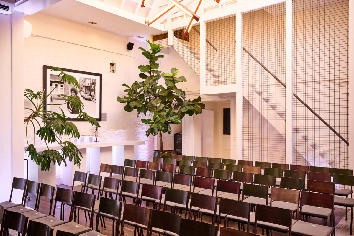 Een parelwitte ruimte met schoon gestoken wanden, een artistieke kroonluchter van TL buizen en een schuin glazen dak op een hoogte van maar liefst 9 meter. Het pronkstuk van deze ruimte is zonder twijfel de beroemde foto van een jonge Michael Jackson op de Lauriersgracht (1977), vastgelegd door de legendarische fotograaf Claude Vanheye. Wat je ook organiseert, de Studio biedt een flexibele en stijlvolle setting voor elke gelegenheid.